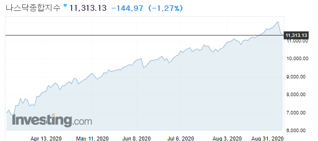 오늘은 2020.09.04 (금) 밤에 있었던 나스닥 폭락에 대해서 작성해보려고 합니다.