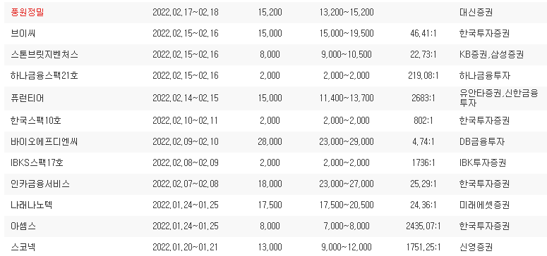| 풍원정밀 공모주 청약 정보 (0) | 2022.02.17 |