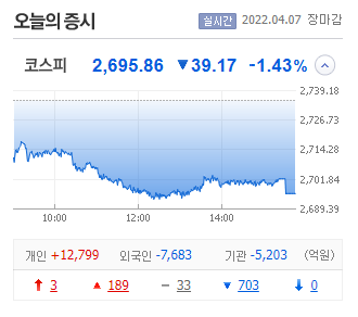 증시가 하락을 하고 코스피가 마이너스 1퍼센트를 기록할 정도라면 개별주들은 꽤나 큰 충격이 있을 것이다.