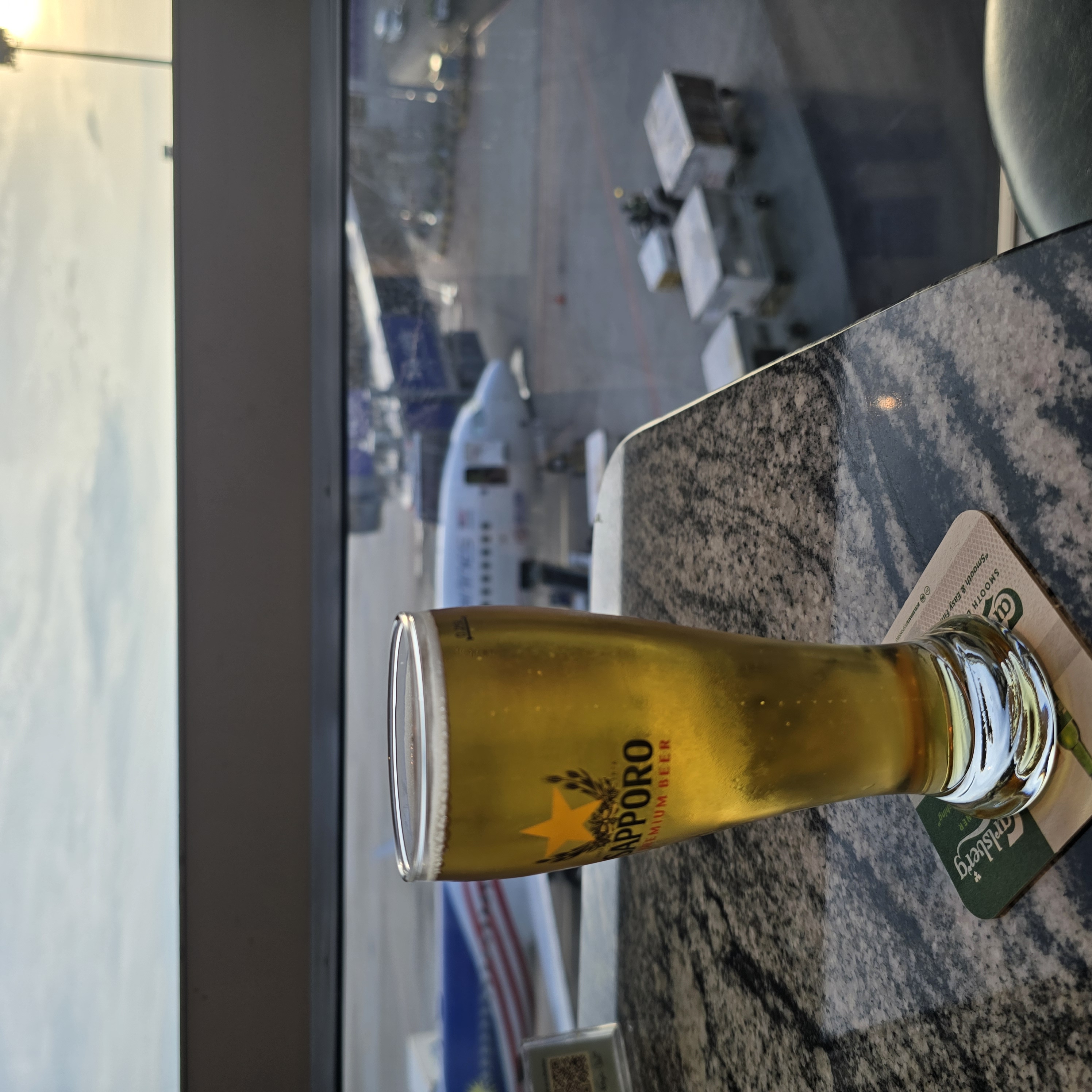 쿠알라룸푸그 2공항 안에는 비행기 통로를 보면서 맥주를 마실 가게가 있다.