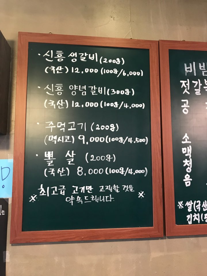 저는 주로 신흥 생갈비를 먹었습니다. 제 입맛에는 생갈비처럼 담백한 고기를 좋아해서 자주 여기서 먹어서 음료수도 서비스로 받았습니다.
